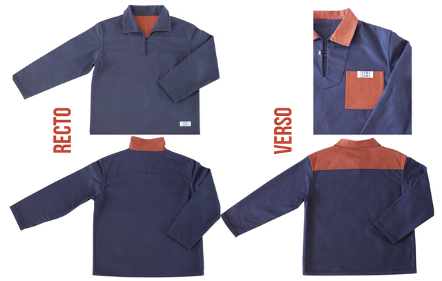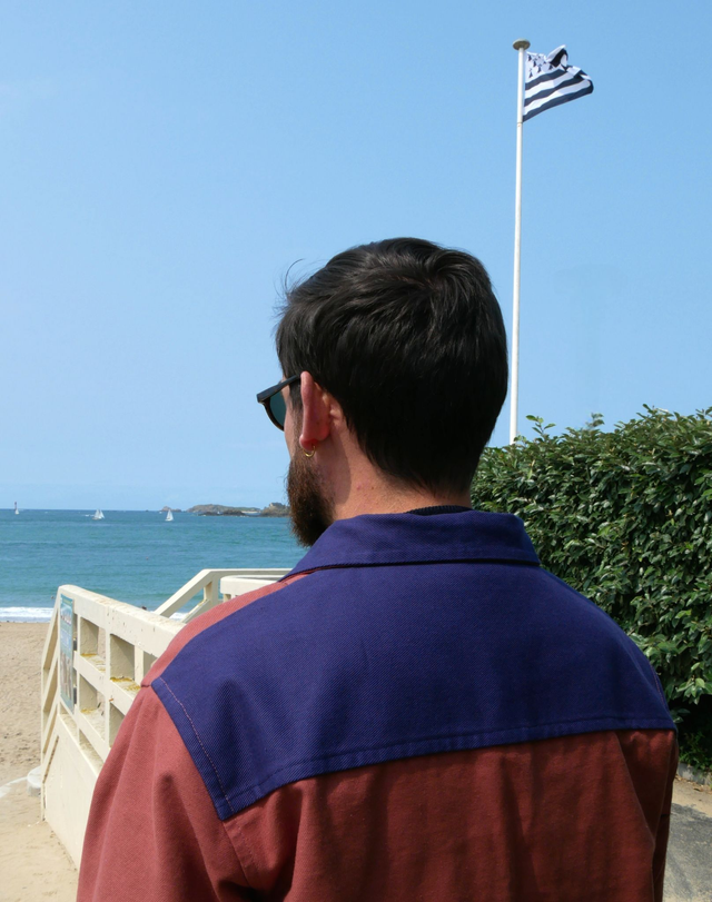 Inspirée du vestiaire traditionnel des marins bretons, cette vareuse réversible, fidèle à sa vocation originelle, rend hommage à l’authenticité d’un vêtement iconique tout en le réinterprétant avec une touche contemporaine façonnée pour durer.