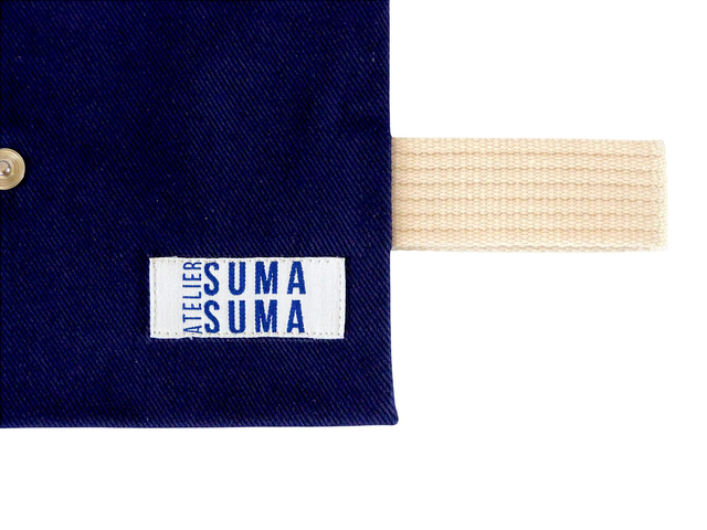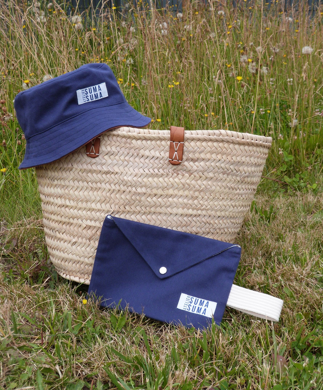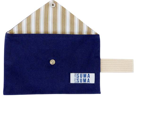 Pochette confectionnée à la main, en tissus 100 % coton, tissés et teints en France.